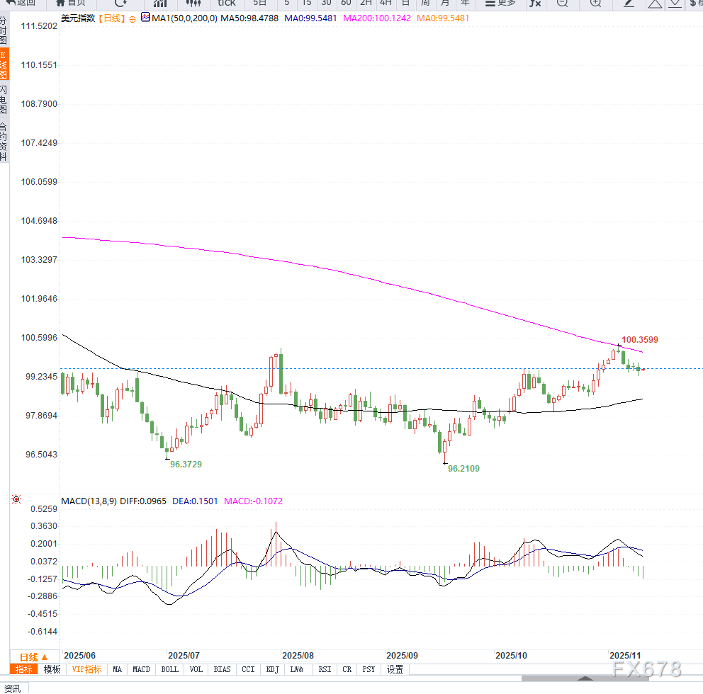 若突破99.65阻力位,目标或延伸至100.00心理关口及100.35区域。