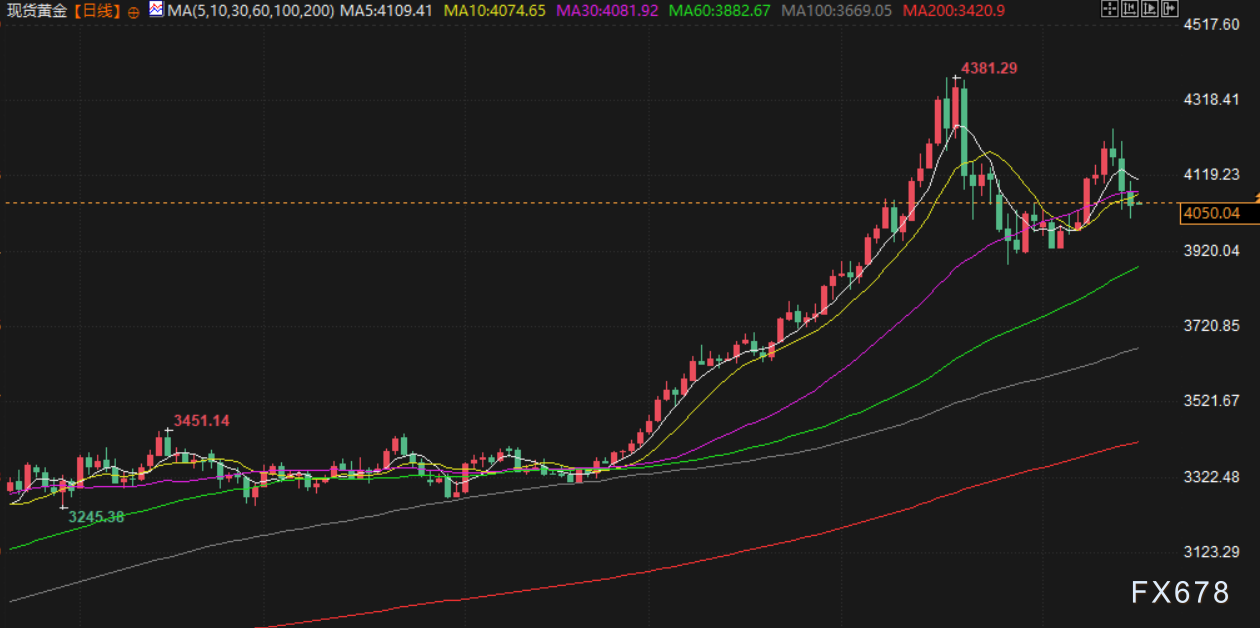 汇通财经APP讯——周二(北京时间11月18日)亚市早盘,现货黄金交投于4050美元/盎司附近,金价周一承压下行,主要受累于美元走强及市场对美联储12月降息预期降温。投资者正密切关注本周即将发布的延迟经济数据;美原油交投于59.68美元/桶附近,油价周一小幅回落,俄罗斯新罗西斯克港在遭遇袭击后恢复装货的消息缓解了供应中断的忧虑,但乌克兰对俄罗斯能源设施的持续攻击仍使市场保持警惕。