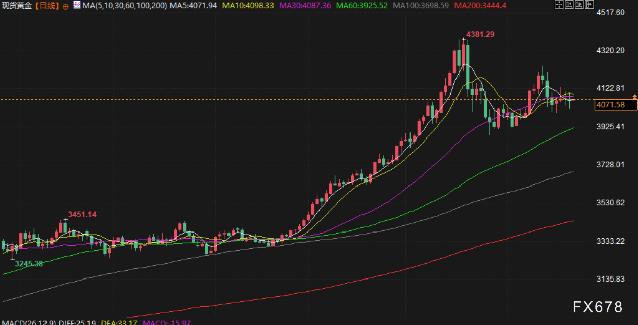 最终,现货黄金持稳于每盎司4086.57美元,上周小幅上涨0.1%。其他贵金属中,白银小幅下跌,铂金和钯金则微幅收涨。