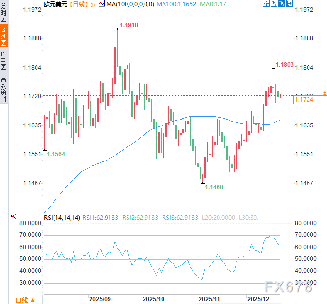 美国通胀数据表现温和,欧洲央行也在年内最后一次会议上决定维持利率不变,这些因素对欧元兑美元走势的方向性指引影响甚微。